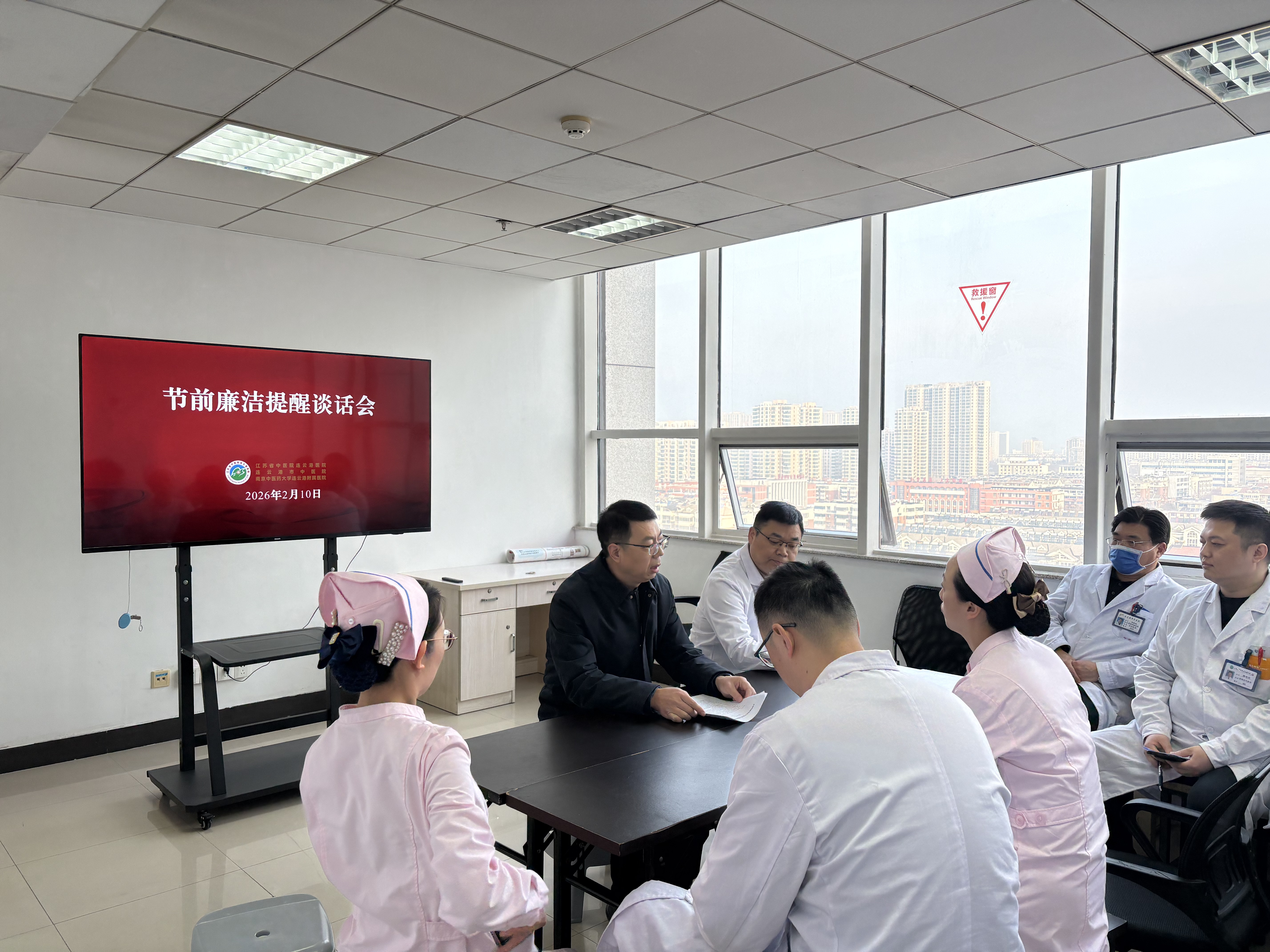 新春佳节将至,为抓好中央八项规定精神的落实,持续深化医药领域腐败问题的集中整治,强化医务人员廉洁自律意识。2月10日,市中医院组织人员分别到骨伤科、设备处等重点科室召开廉洁提醒谈话会。