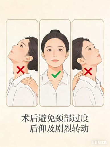 2.颈部功能锻炼:为减轻颈部僵硬感和疤痕粘连,拆线后2-3天可开始缓慢进行颈部活动。