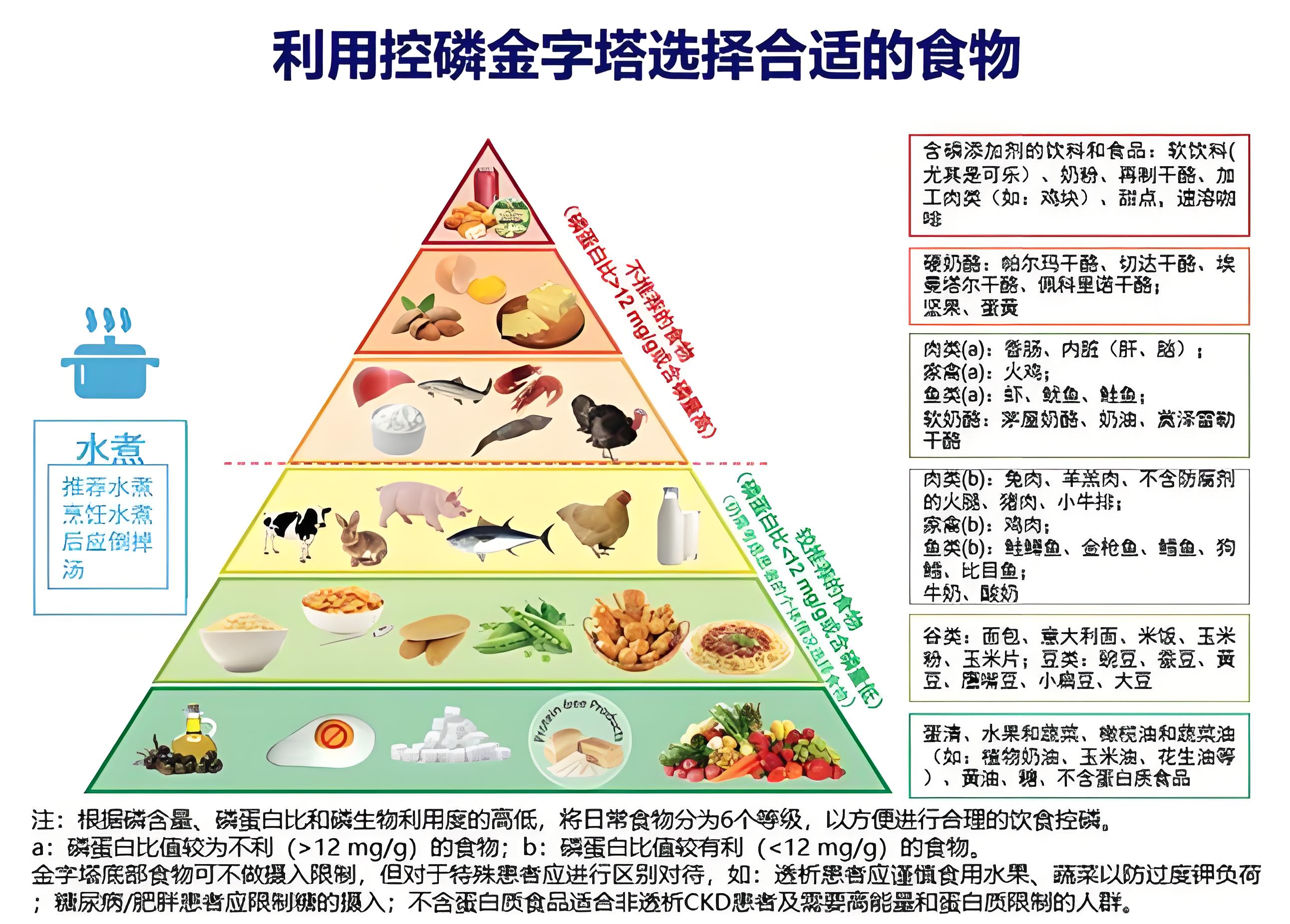 2. 透析治疗者,饮食以足够热量、低盐、低脂、优质高蛋白为宜,多食新鲜蔬菜水果,可食乳类、蛋类、瘦肉等。控制饮水量,每日饮水量为前一日尿量加500ml为宜;少食蘑菇、海带、榨菜、香蕉、橘子、卷心菜等含钾高食物;忌食动物内脏、全麦面包、干豆类、硬壳果类、奶粉、蛋黄、巧克力等含磷高的食物。
